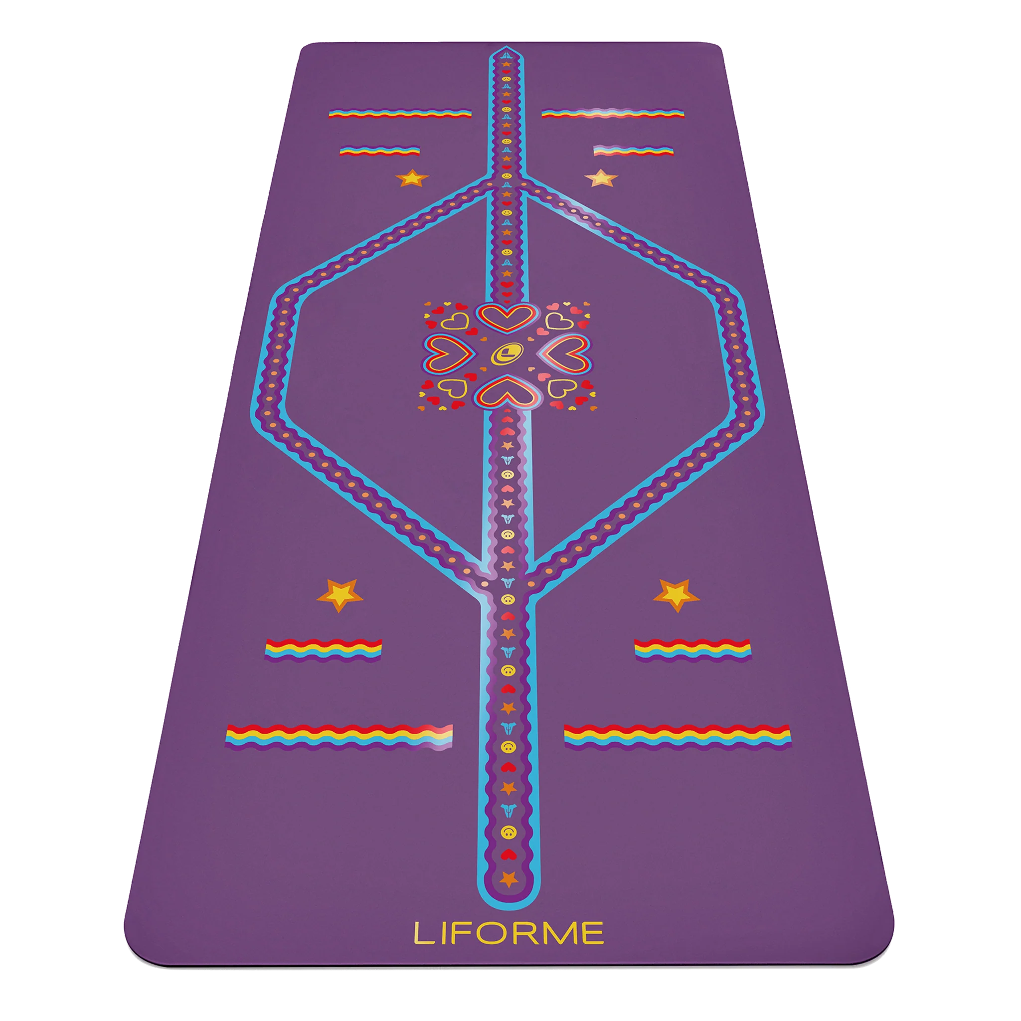 The Liforme Kids Playful Yoga Mats are recommended for kids up to 140 cm (4 feet 7 inches), available in 7 base surface colours each with a Playful printed alignment guide, which features hearts, stars, and wiggly rainbows. Planet friendly and non-toxic they are completely safe to touch, smell, and even lick (these things happen!).